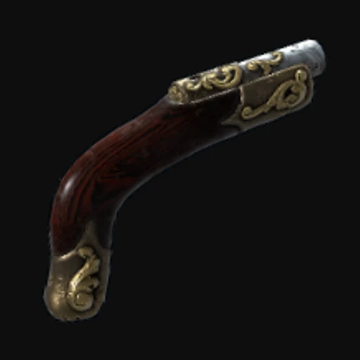 The Antique Eoka Pistol features a rustic and weathered design that evokes a sense of nostalgia and craftsmanship. The skin showcases a rich, dark wood grain, complemented by brass accents that highlight its vintage aesthetic. Intricate engravings adorn the surface, giving it a handcrafted feel, while a faded patina enhances its antique charm. The overall color palette consists of deep browns and muted golds, creating a warm and inviting look that stands out against the more modern designs typically seen in Rust.