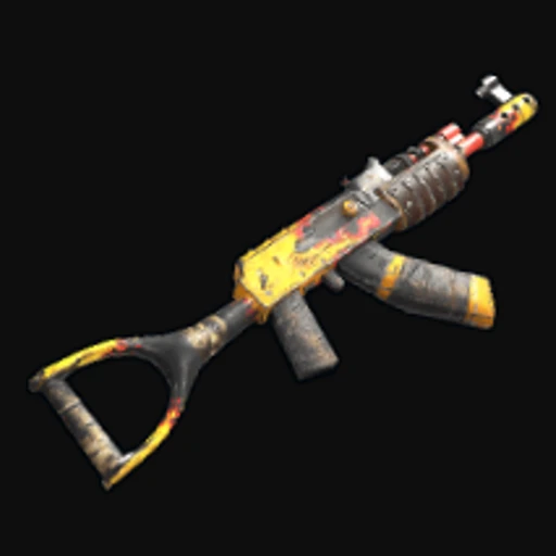 The "Dark Flames" skin for the Rust Assault Rifle features a striking design characterized by deep blacks and vibrant reds, creating a fiery aesthetic that evokes the intensity of flames. The art style leans towards a stylized realism, with the flames appearing to flicker and dance along the body of the rifle. This skin not only enhances the visual appeal of the weapon but also reflects the aggressive nature of combat in Rust, where the Assault Rifle serves as a primary weapon for players, offering versatility in both close and long-range engagements.
