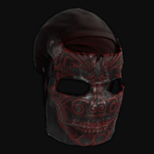 The Death Facemask skin transforms the standard Rust Metal Facemask into a striking piece of art. It features a dark color palette dominated by deep reds, blacks, and hints of bone-white, creating a menacing aesthetic. The design incorporates intricate details that evoke a sense of horror, including stylized skull motifs and jagged patterns that suggest a macabre theme. This skin not only enhances the visual appeal of the Metal Facemask but also reinforces its role as a key piece of attire for players looking to protect themselves against environmental dangers and hostile encounters.