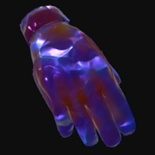 The Deep Ruby Tactical Gloves feature a striking design that combines a rich ruby red base with violet iridescence, creating a visually dynamic effect that shifts in color depending on the angle of light. The gloves are adorned with a sleek, modern aesthetic, showcasing a combination of smooth and textured surfaces that emphasize both style and functionality. This attention to detail in the art style enhances their appeal, making the gloves look both tactical and fashionable at the same time.