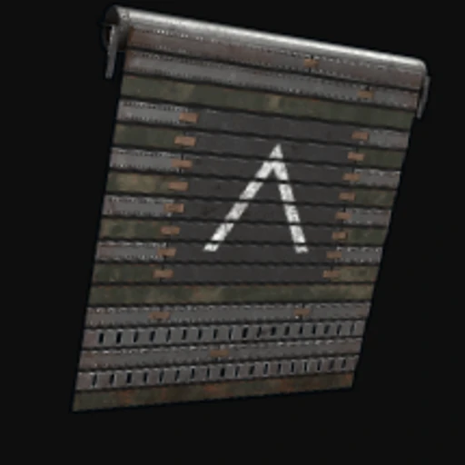 The Defense Garage Door skin features a striking design that combines a rugged military aesthetic with a modern twist. The color palette primarily consists of dark greens and earthy browns, reminiscent of camouflage patterns, accented with sharp metallic elements that suggest durability and strength. The art style leans towards a realistic representation, emphasizing the industrial nature of the Garage Door, which serves as a crucial defensive barrier in Rust. Players often use Garage Doors to secure their bases, making them essential for protecting valuable resources from raiders.