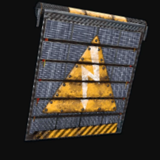 The Electro Garage Door skin features a vibrant and electrifying design, dominated by shades of neon blue and bright yellow, which create a striking contrast against the standard metal surface of the Garage Door. The pattern is reminiscent of circuit board designs, giving it a tech-inspired aesthetic that aligns with its name. This skin applies specifically to the Garage Door item in Rust, a crucial element for base building and security, providing players with a robust barrier against intruders.