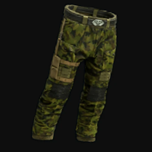 The Elite Forest Camo Pants skin features a vibrant combination of greens and browns, designed to blend seamlessly into forest environments. The camo pattern is intricate, with various shades that mimic natural foliage, enhancing the stealth aspect of the game. This Rust Pants skin is primarily used for character attire, providing both aesthetic appeal and functionality as players navigate the challenging landscapes of Rust. The design reflects a rugged, military-inspired theme, ideal for players who prefer a tactical look while engaging in survival gameplay.
