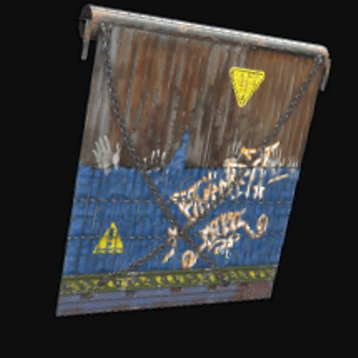 The Factory Rolling Door skin features a striking industrial design characterized by a combination of dark gray and bright yellow hues. The skin showcases a detailed pattern reminiscent of a factory environment, complete with caution stripes and a weathered texture that suggests heavy use. This Rust Garage Door skin is applied to the Garage Door, a critical component in Rust for securing bases and protecting valuable resources from intruders. Its robust construction and ability to withstand significant damage make the Garage Door an essential item for players looking to fortify their structures.