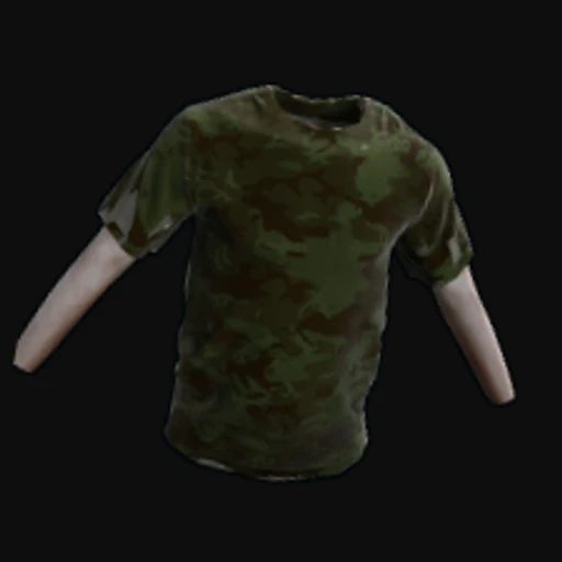 The Forest Camo Tshirt is a Rust T-Shirt skin featuring a classic camouflage pattern that blends various shades of green, brown, and black. The design is practical and understated, evoking a woodland theme that meshes well with the survival environment of Rust. This skin applies specifically to the T-Shirt item, which serves as a basic layer of clothing in the game, providing minimal protection against the elements while allowing players to customize their appearance.