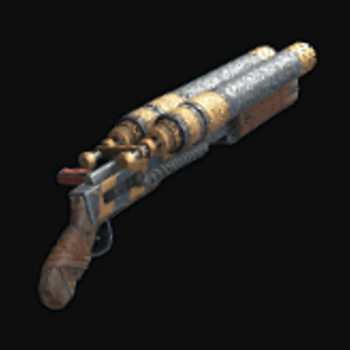 The Last Hero DBS is a striking Rust Double Barrel Shotgun skin that features a vibrant and somewhat gritty design. The skin is dominated by a deep red base, adorned with intricate gold and black accents that create a bold contrast. The artwork reflects a theme of heroism and valor, with stylized graphics that lend an almost comic book feel to the weapon. The Double Barrel Shotgun itself is a powerful close-range weapon in Rust, known for its ability to deliver devastating damage in a single shot, making it a popular choice for ambush tactics and defending against intruders.