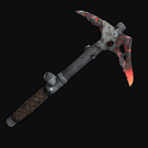 In the market context, the Lavapick is a creation by the artist FylkirValdr, known for their unique and bold designs within the Rust skin community. While specific pricing details are not available, skins by this creator often attract attention due to their distinctive art style and thematic coherence. The collectibility of skins like the Lavapick can vary based on demand, rarity, and the overall popularity of the creator's work, making it a potential addition for collectors looking to enhance their inventory with standout pieces.