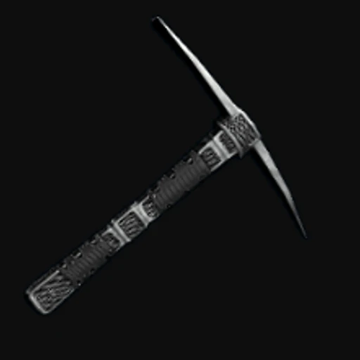 The Lightweight Pick Axe skin transforms the standard Rust Pickaxe into a sleek, modern tool with a minimalist design. It features a predominantly metallic silver finish, accented by sharp black lines that create a dynamic, angular pattern. The art style embodies a contemporary aesthetic, giving the pickaxe a lightweight appearance that reflects its name. This skin applies to the Pickaxe, one of the essential tools in Rust, used for gathering resources like stone and metal, as well as for breaking down structures.