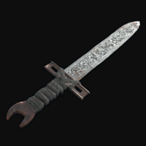 The Metal Roses Short Sword is a visually striking Rust Salvaged Sword skin that features a dark, metallic base adorned with intricate rose patterns in shades of deep red and black. This design combines a gothic aesthetic with a modern twist, creating a captivating look for the melee weapon. The Salvaged Sword itself is a versatile weapon commonly used for close combat, valued for its balance of speed and damage, making it a staple for players who prefer a hands-on approach to combat.