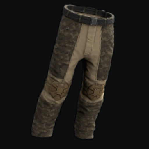 The Military Pants skin features a rugged design, showcasing a classic military camouflage pattern in shades of green, brown, and black. This attire is tailored for durability and functionality, embodying a utilitarian aesthetic that fits well within the harsh environment of Rust. The skin applies specifically to the Pants item, which serves as essential clothing for players, offering protection against environmental hazards and improving overall survivability during encounters with other players or wildlife.