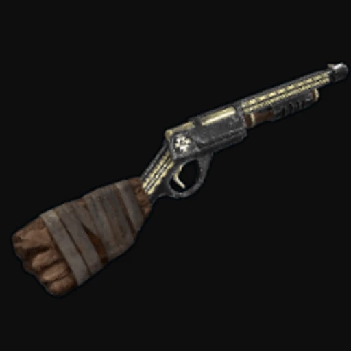 The "Native Gold" skin for the Rust Pump Shotgun features a striking design that combines rich gold tones with intricate tribal patterns. This skin emphasizes a bold aesthetic, showcasing a blend of geometric shapes and flowing lines that evoke a sense of artistry and craftsmanship. The overall look is both eye-catching and thematic, making it a fitting choice for players who appreciate unique visuals. The Pump Shotgun itself is a powerful close-range weapon in Rust, known for its ability to deal devastating damage in tight encounters, making it a favorite among players who prefer aggressive playstyles.
