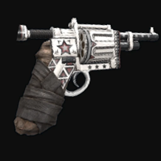 The Patriot Revolver skin features a striking design that combines vibrant red, white, and blue colors, reminiscent of the American flag. The skin showcases a bold and dynamic pattern, emphasizing a patriotic theme that stands out on the Revolver. With its sleek lines and artistic flair, the Patriot Revolver adds a unique aesthetic to this standard weapon, which players commonly use for close to mid-range engagements in Rust. The Revolver is favored for its high damage output and precision, making it a reliable choice for players looking to defend their territory or engage in skirmishes.