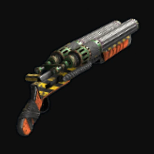 The Raider's Shotgun skin transforms the Rust Double Barrel Shotgun into a striking piece of art, featuring a rugged aesthetic that embodies a post-apocalyptic theme. The design showcases a mix of dark, muted colors, with splashes of rust and grime that suggest heavy use in the harsh environment of Rust. The skin incorporates intricate patterns, including tribal motifs and sharp angles that give the shotgun a fierce appearance. This skin enhances the weapon's visual appeal, making it not just a tool for survival, but also a statement of style in the game.