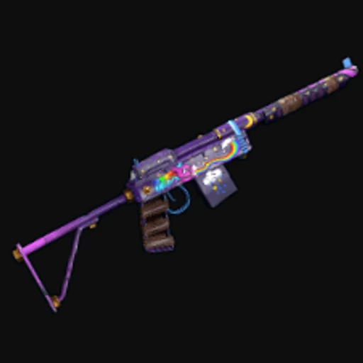 The Rainbow Pony SAR is a vibrant Rust Semi-Automatic Rifle skin that features a whimsical design, characterized by a bright color palette dominated by shades of pink, blue, and yellow. The skin showcases a playful theme, with a cartoonish pony motif that adds a lighthearted touch to the usually grim atmosphere of Rust. The art style is reminiscent of children's illustrations, bringing a sense of fun to the weapon. The Semi-Automatic Rifle itself is a versatile firearm in Rust, favored for its balance of power and accuracy, making it a popular choice for both mid-range engagements and quick skirmishes.