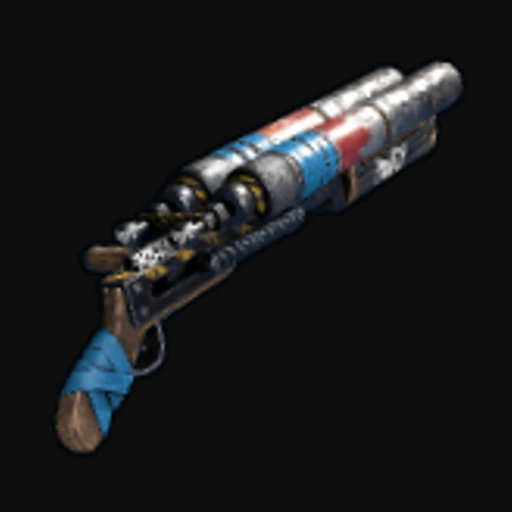 The Rat King DBS is a striking Rust Double Barrel Shotgun skin that features a dark, gritty aesthetic with a blend of deep browns and muted greens. The design incorporates a stylized rat motif, with intricate detailing that gives the impression of fur and texture, enhancing the overall menacing vibe of the weapon. This skin encapsulates a post-apocalyptic theme, perfectly aligning with the harsh environment of Rust, where the Double Barrel Shotgun serves as a reliable close-range weapon, favored for its devastating power in combat situations.
