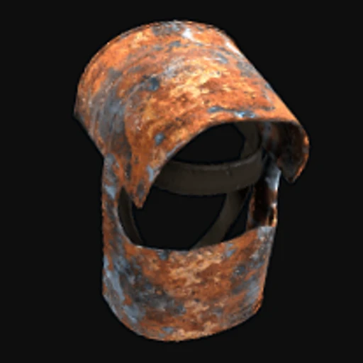The Rusty Coffee Can Helmet skin features a weathered, industrial aesthetic that embodies the harsh environment of Rust. The helmet is adorned with a rusty, metallic texture that showcases shades of orange and brown, mimicking the look of corroded metal. The overall design is gritty, with scratches and imperfections that suggest a long history of wear and tear. As part of the attire in Rust, the Coffee Can Helmet provides basic head protection against environmental hazards and minor attacks, making it a practical choice for players venturing into the game's unforgiving landscapes.