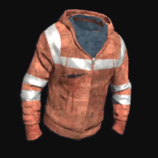 The Safety Crew Rust Hoodie skin features a vibrant combination of yellow and orange hues, reminiscent of high-visibility safety gear. The design incorporates bold black stripes and reflective patterns, emphasizing its theme of protection and alertness. This art style leans towards a utilitarian aesthetic, making it a fitting choice for players who want to convey a sense of readiness in the harsh environment of Rust. The hoodie serves as essential attire, providing players with warmth and a degree of protection against the elements while also being a staple in crafting and base-building.