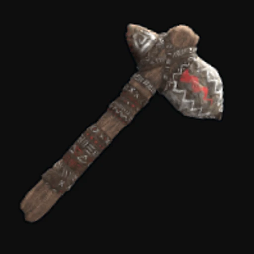 The Tirbal Stone Hatchet skin features a vibrant and earthy color palette, blending deep browns with shades of green and hints of orange, reminiscent of tribal art. The design showcases intricate patterns that evoke a sense of ancient craftsmanship, making it visually distinct among the various Rust Stone Hatchet skins. This skin applies to the Stone Hatchet, a versatile tool in Rust used for gathering resources like wood and stone, as well as a basic melee weapon for combat scenarios.