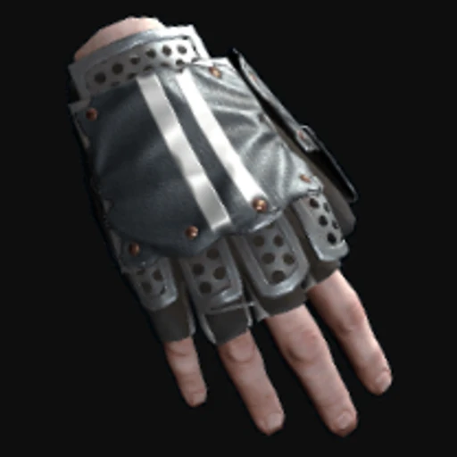 The Training Roadsign Gloves feature a striking design that combines a rugged industrial aesthetic with vibrant color accents. The gloves are primarily constructed from a dark, weathered fabric that resembles road signs, giving them a utilitarian look. Overlaid with bold yellow and orange markings, the gloves showcase a pattern reminiscent of hazard symbols, enhancing their thematic connection to training and safety. The art style leans towards a gritty, urban feel, making them a fitting choice for players looking to embody a tough, resilient persona in the game.