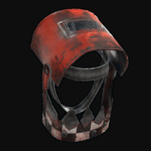 The Warboy Helmet is a striking Rust Coffee Can Helmet skin characterized by its post-apocalyptic aesthetic. It features a rugged design with a weathered, metallic finish, predominantly showcasing shades of dark gray and rusty red. The helmet is adorned with various war-themed motifs, including scratches and battle scars that enhance its tough appearance. This skin transforms the standard Coffee Can Helmet, which provides crucial head protection in the game, into a visually compelling piece that reflects the harsh environment of Rust.