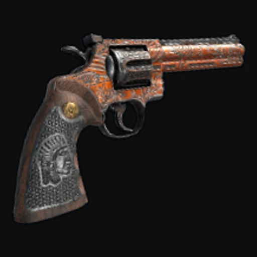 The Warstory Python skin features a gritty, war-torn aesthetic that embodies a sense of rugged survival. The design prominently showcases a combination of dark and muted colors, with splashes of red that evoke a sense of danger and urgency. The artwork includes various markings and textures that suggest wear and battle scars, aligning well with the Python Revolver's role as a reliable sidearm in Rust. Known for its versatility and stopping power, the Python Revolver is often favored for its ability to deliver high damage at close range, making it a staple in any player's arsenal.