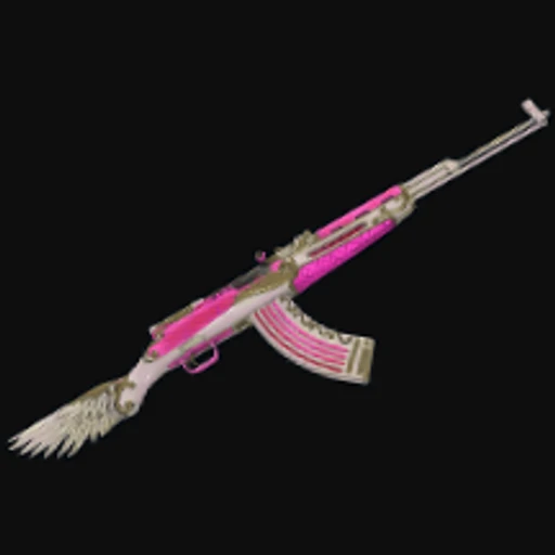 The Wings Of Death SKS features a striking design that blends dark and vibrant colors, predominantly showcasing shades of red and black. The artwork is inspired by a Valentine theme, incorporating motifs that evoke both love and a sense of foreboding. The skin is adorned with intricate patterns that resemble stylized wings, giving the impression of movement and aggression. This combination of colors and imagery creates a visually captivating piece that stands out on the battlefield, drawing attention with its bold aesthetic and thematic resonance.