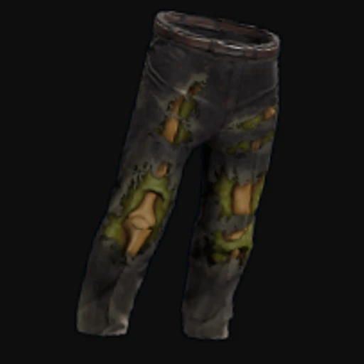 The Zombie Costume Pants skin features a tattered and distressed design that embodies a post-apocalyptic aesthetic. The pants are primarily a sickly green color, resembling decayed flesh, with splashes of darker hues that enhance the worn and gruesome look. The art style leans into a cartoonish horror theme, making it visually striking while maintaining a sense of humor typical of Rust's diverse skin offerings. As part of the attire system in Rust, these pants provide protection against the elements while allowing players to express their individuality in the game's harsh environment.
