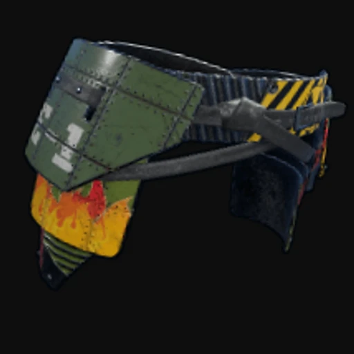 The Bombshell Kilt is a striking Rust Road Sign Kilt skin featuring a bold design that combines vibrant colors and intricate patterns. The base of the kilt showcases a deep red hue, accented by explosive yellow and orange graphics that evoke a sense of dynamic movement. The art style leans towards a modern, graffiti-inspired aesthetic, making it stand out among the various attire options in the game. The Road Sign Kilt serves as a protective clothing item that provides players with essential armor, making it a practical choice for both aesthetics and gameplay.