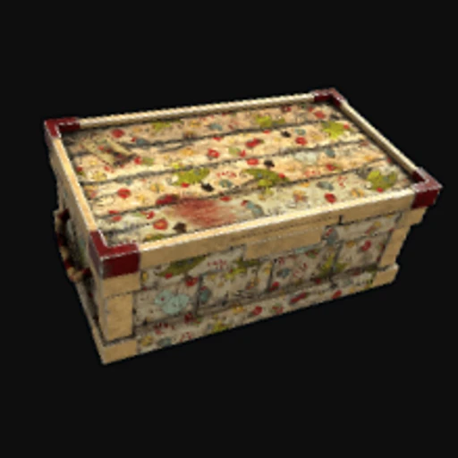 The Christmas Holiday LWB is a festive skin designed for the Rust Large Wood Box, transforming the otherwise utilitarian storage item into a cheerful seasonal decoration. The skin features a vibrant color palette dominated by reds, greens, and whites, evoking the spirit of the holiday season. It showcases playful patterns, including snowflakes and Christmas trees, rendered in a cartoonish art style that adds a whimsical touch to the box. This Large Wood Box serves as a crucial storage solution in Rust, allowing players to securely stash their resources and items, making the Christmas Holiday LWB a delightful addition to any player's inventory.