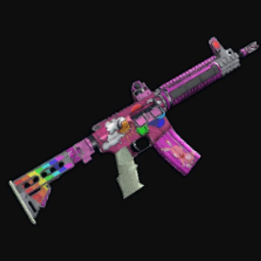 The Cutesy LR300 is a vibrant and playful skin for the Rust LR-300 Assault Rifle, featuring a whimsical design that incorporates pastel colors and cartoonish elements. The rifle is adorned with charming illustrations, including adorable characters and floral patterns, creating a lighthearted aesthetic that contrasts with the often harsh environment of Rust. This skin adds a unique flair to the LR-300, a versatile weapon favored by players for its accuracy and rate of fire, making it a popular choice for both mid-range engagements and close-quarters combat.
