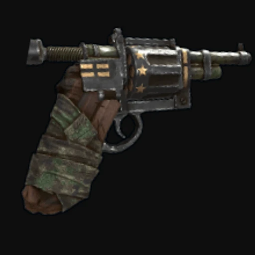 The "Defender" skin for the Rust Revolver features a striking design that combines a tactical aesthetic with a bold color palette. Dominated by deep greens and blacks, the skin showcases a camouflaged pattern that evokes a sense of rugged resilience. The art style leans towards realism, emphasizing utility and durability, which complements the Revolver's role as a reliable sidearm in Rust. As players engage in combat, the Revolver serves as a versatile weapon, effective for both close-quarters encounters and ranged confrontations, making it a staple for many players.