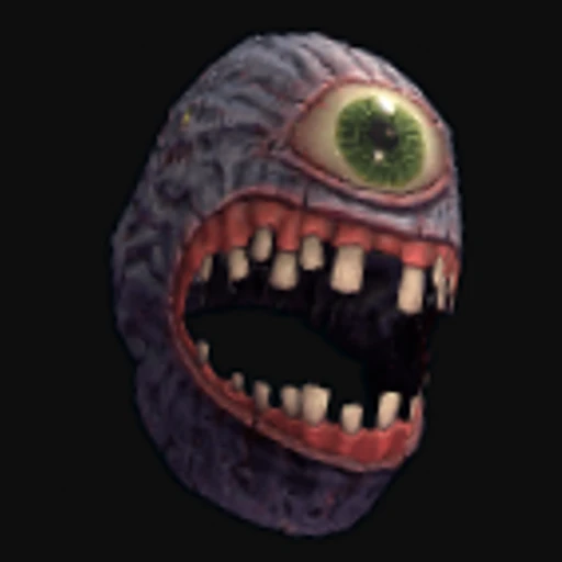 The Freak Headwrap skin transforms the standard Rust Burlap Headwrap into a striking piece of headgear that features a vibrant color palette dominated by greens, yellows, and blacks. The design incorporates a chaotic pattern reminiscent of a creature's face, complete with exaggerated features that evoke a sense of wildness. This skin retains the functionality of the Burlap Headwrap, which provides basic protection from environmental elements while offering a modest level of camouflage. The art style is playful yet edgy, appealing to players who enjoy a touch of the bizarre in their attire.