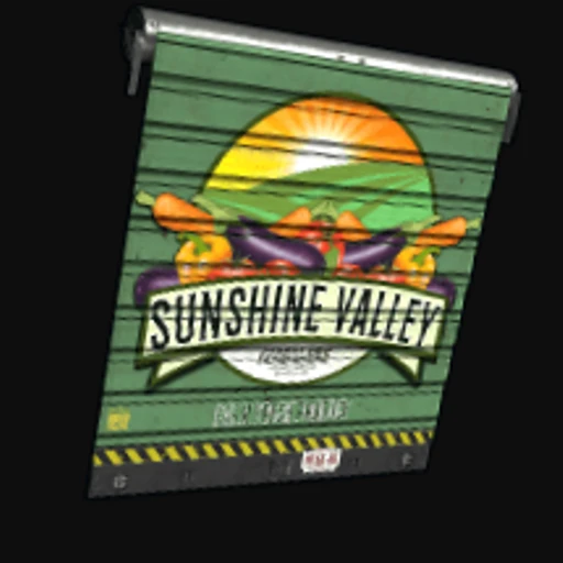 In the market context, the Fresh Produce Garage Door skin is part of a growing collection of unique and thematic skins that appeal to collectors and players alike. Created by the artist StabbyMcStabface, this skin stands out due to its whimsical design that contrasts sharply with the harsh environment of Rust. The collectible nature of skins like this one often leads to fluctuating values, as demand can vary based on trends and player preferences within the community.