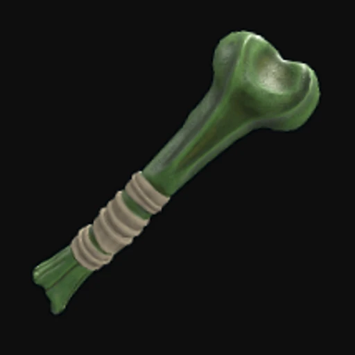 The Frog Club skin transforms the Bone Club into a vibrant and whimsical weapon, featuring a bright green color palette that mimics the appearance of a cartoonish frog. The design includes playful patterns and textures that evoke a sense of fun, with bulging eyes and a wide grin that stand out against the club's wooden texture. The Bone Club, a melee weapon in Rust, is primarily used for close combat, ideal for players looking to engage in hand-to-hand conflicts or harvest resources quickly in the game.