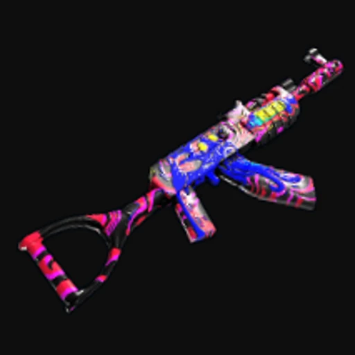The MK-ULTRA is a striking Rust Assault Rifle skin characterized by its vibrant mix of colors and bold patterns. The design features a chaotic array of neon hues, including electric blue, bright pink, and acid green, layered over a dark base. This psychedelic aesthetic is reminiscent of 80s retro-futurism, giving the weapon a unique visual flair that stands out in the heat of battle. The skin applies to the Assault Rifle, one of the most versatile and widely used firearms in Rust, known for its high damage output and effectiveness in both close and long-range combat.