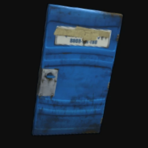 The "Potty Door" is a playful and whimsical Rust Sheet Metal Door skin that transforms the standard door into a vibrant and humorous design. It features a bright blue background adorned with cartoon-style illustrations of a toilet and other bathroom-related imagery. The art style is bold and eye-catching, with a blend of lightheartedness and absurdity that sets it apart from more serious skins. This skin applies to the Sheet Metal Door, a crucial construction item in Rust that serves as a barrier against intruders while providing a sturdy entrance to player-built structures.