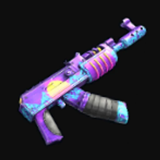 The Retrowave AR is a vibrant and nostalgic skin for the Rust Assault Rifle, featuring a striking blend of neon colors with a retro-futuristic aesthetic. The design incorporates a gradient of pinks, purples, and blues, reminiscent of 80s synthwave art. Geometric patterns and wave motifs run along the body of the rifle, creating a dynamic visual effect that captures the essence of retro video game culture. This skin not only enhances the appearance of the Assault Rifle but also reflects the weapon's role as a primary firearm in Rust, known for its versatility and effectiveness in both PvP engagements and base raids.