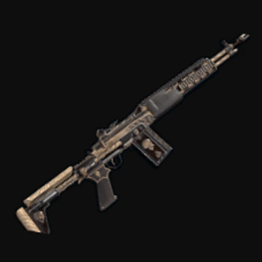 The Skull Seeker is a striking Rust M39 Rifle skin that features a bold and sinister design. The rifle is adorned with a dark color palette dominated by deep blacks and grays, accented with vivid splashes of red. Intricate skull motifs and sharp, angular patterns give the weapon a menacing aesthetic, making it visually impactful in the harsh environments of Rust. The M39 Rifle itself is a versatile weapon, favored for its accuracy and power, making it a reliable choice for mid to long-range engagements.