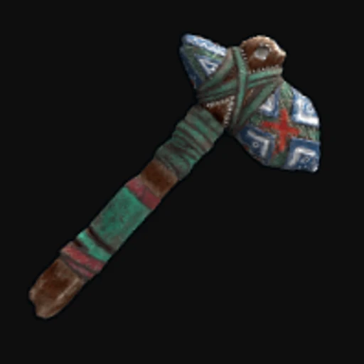 The "Tree Killer" skin transforms the standard Rust Stone Hatchet into a striking visual piece that features a vivid green and brown color palette, evoking the look of a tree with bark-like textures and leafy patterns. This design emphasizes an organic theme, making the tool appear as if it has been crafted from nature itself. The Stone Hatchet is a fundamental item in Rust, primarily used for gathering wood from trees, crafting, and melee combat, making its aesthetic appeal significant for players who frequently utilize this tool.